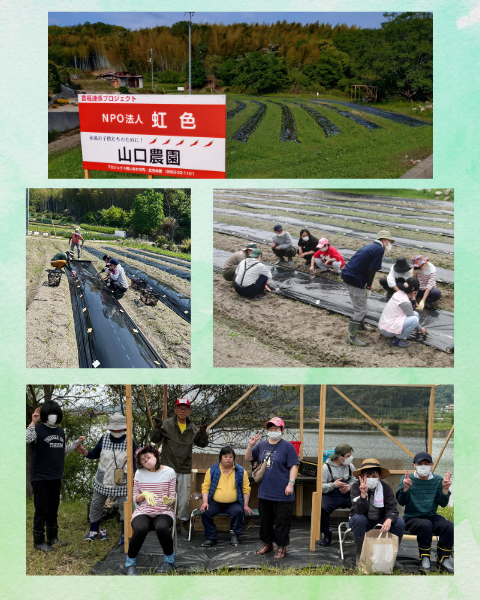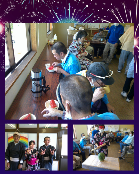 的あてをしました。マスクから笑顔がこぼれてみえました